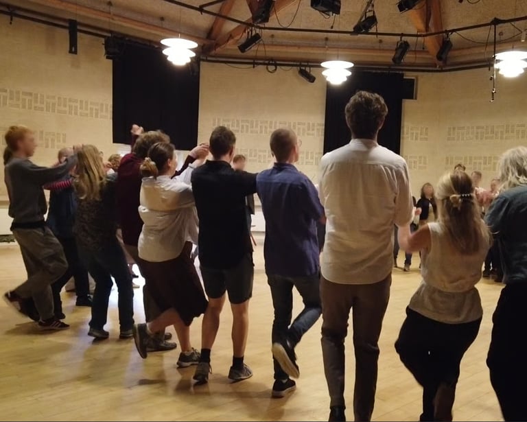 Tilpasset instruktion i folkedans til skoler, der fremmer samarbejde, fællesskab og sjov.